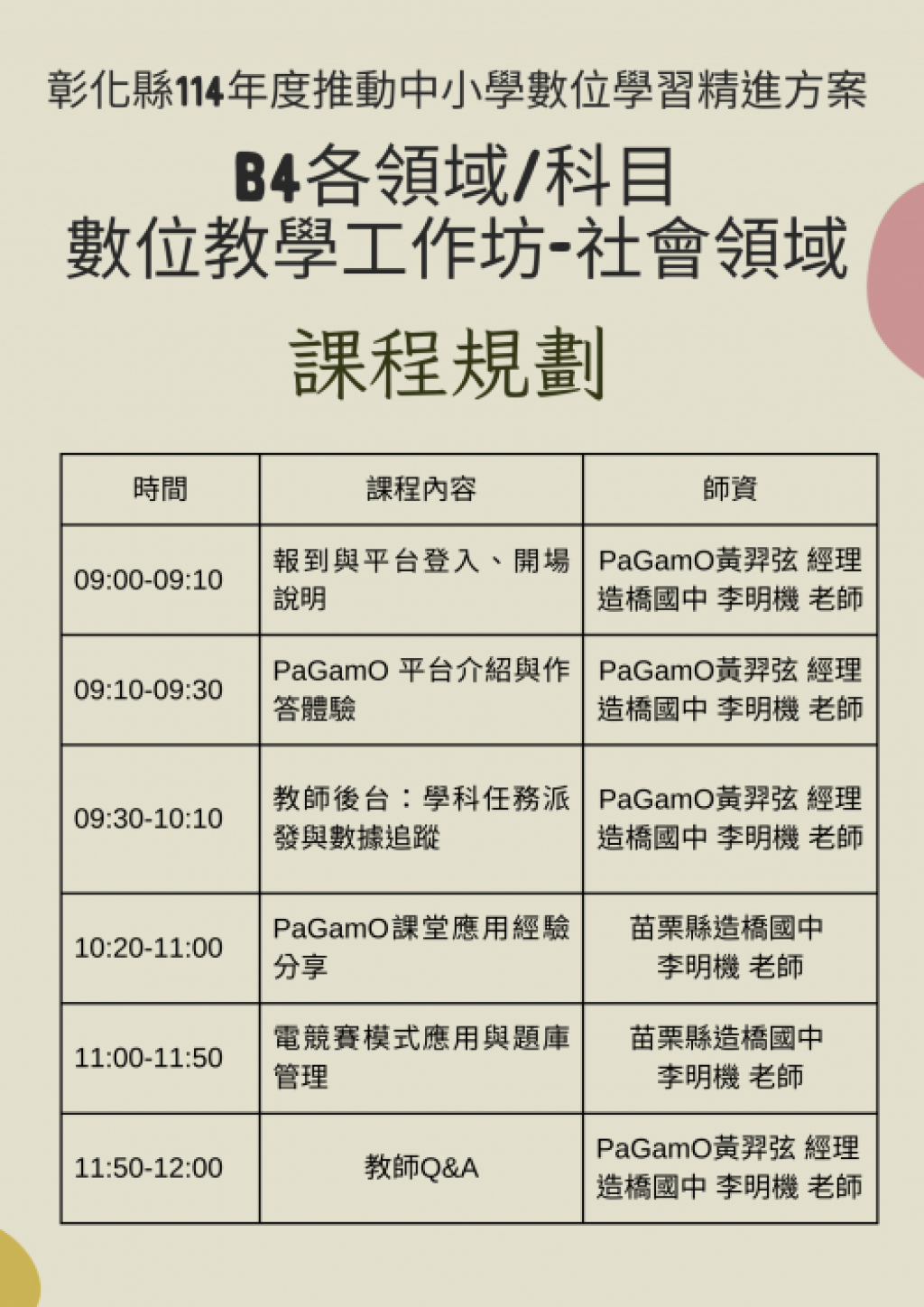 授課講師:苗栗縣造橋國中 李明機 教師。