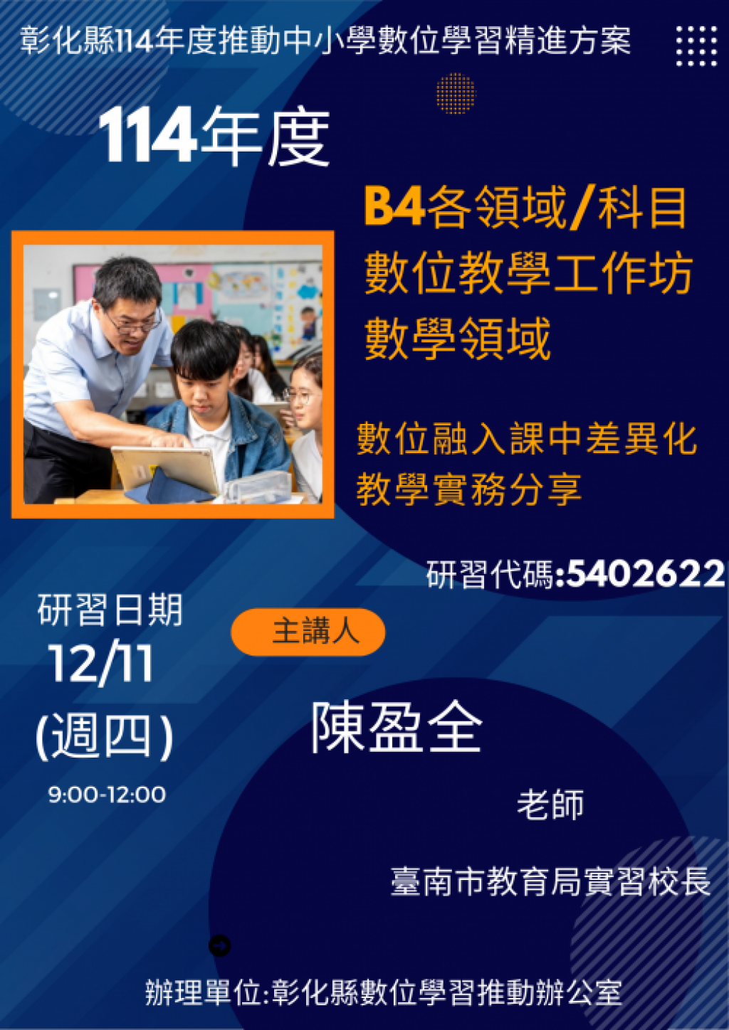 日期:114年12月11日(週四)9:00-12:00 於縣網中心 大會議室 研習代碼:5402622