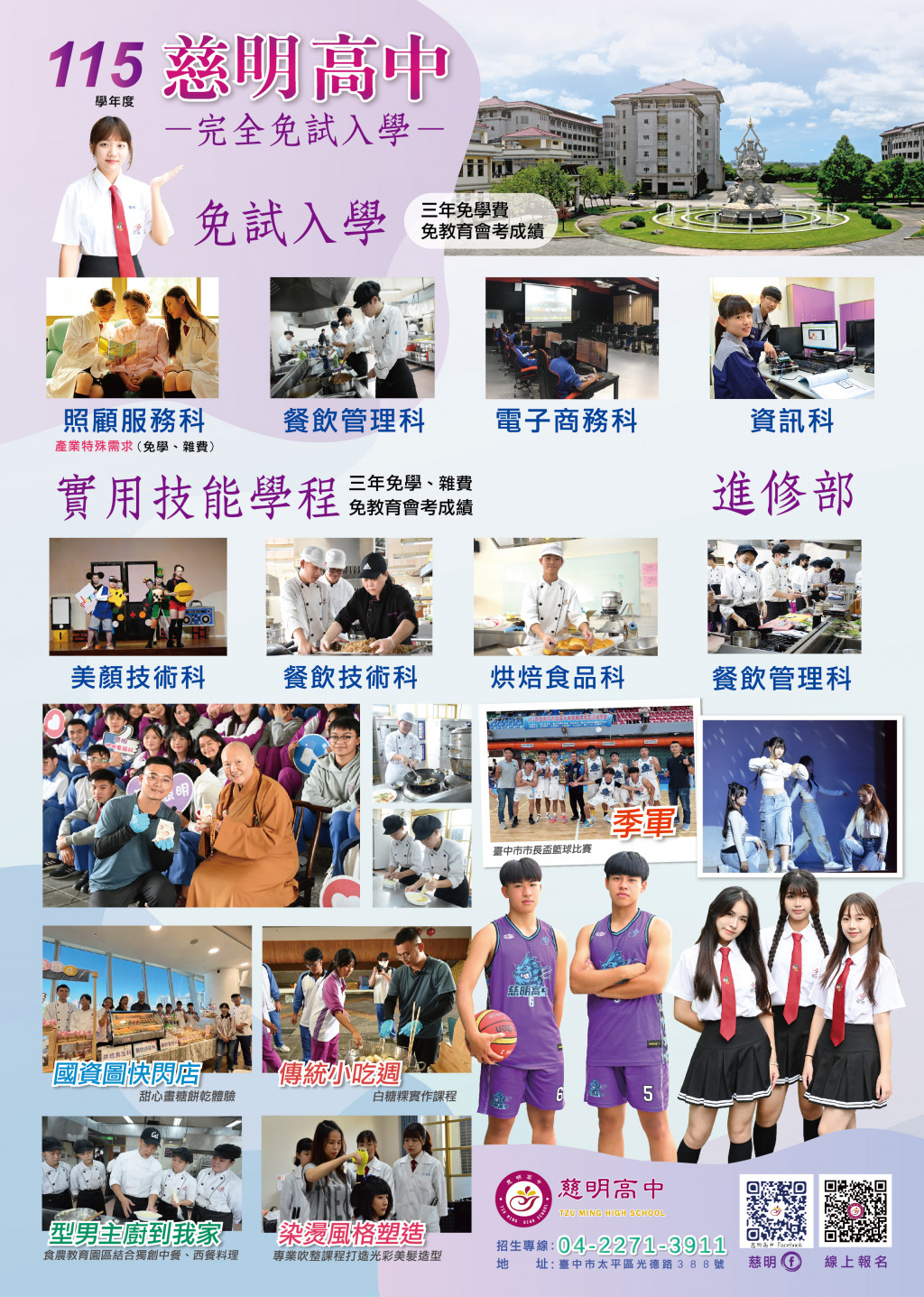 115學年度開設「餐飲管理科」、「觀光事業科」、「美容科」輪調式建教合作班;另「餐飲管理科」開設第3年王品專班。