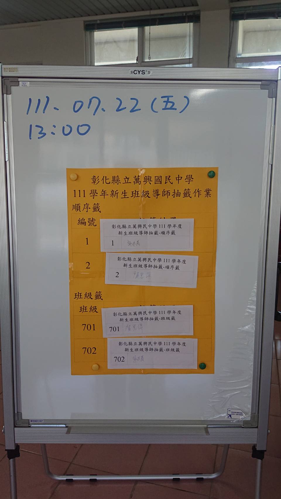 三、抽 籤 結 果:七年一班 賀思萍老師、七年二班 許雅茵老師